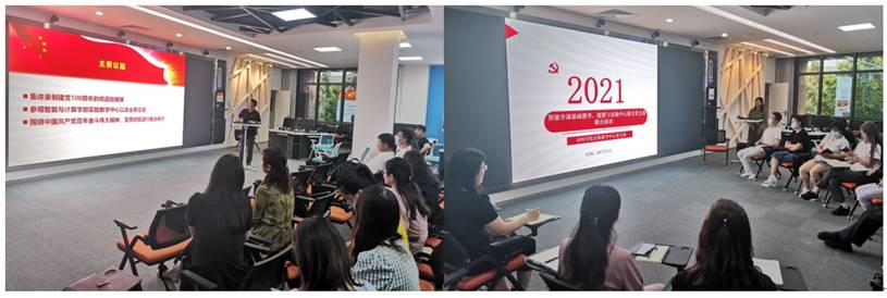为庆祝中国共产党建党100周年,围绕中国共产党百年奋斗伟大精神及宝贵经验,材料学院实践教学中心党支部,智能学部基础教学、超算与实验中心联合党支部,于2021年6月16日下午,在47楼智算学部虚拟仿真实验室,开展了党史教育专题交流学习活动,活动由智能学部基础教学、超算与实验中心联合党支部书记肖健老师主持。