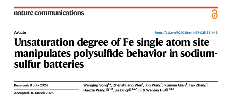 室温钠硫电池凭借硫的高比容量(1675 mAh g-1)和低成本环保优势,在大规模储能领域潜力巨大,但其面临硫及其放电产物导电性差(25 ℃时5×10-28 S m-1)、多硫化物穿梭等挑战。传统对称配位结构单原子催化位点对多硫化物的吸附与转化效能有限。为此,本研究创新性提出Fe单原子位点的几何结构(γ)和电子结构(φ)的双描述符理论模型,揭示不饱和度最高的Fe-N1位点能最优调控多硫化物吸附与分解。实验证实采用Fe-N1位点的电极在167.5 mA g-1下实现81.4%的硫利用率,在1675 mA g-1仍保持1003 mAh g-1的高倍率容量,软包电池中硫利用率达77.4%,为设计高效钠硫电池提供了原子级调控新思路,推动了硫化学动力学与单原子位点构效关系的理论发展。