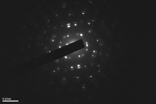作品介绍:材料为氢氧化钴负载钌复合材料,照片采用透射电子显微镜衍射模式拍摄。衍射照片的拍摄难度主要是晶带轴调试选取晶面,这张照片是一号选区光阑下大范围选区拍摄,后期经过DigitalMicrograph软件处理,像光影中的星空,所以这个作品的名字是星空。