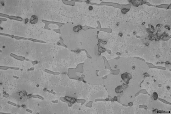 作品介绍:球墨铸铁,是一种高强度的铸铁材料。常用于铸造对强度、韧性、耐磨性要求较高的零件。球墨中的一个个球状石墨宛如夏天池塘中宁静的荷,此图就如诗人卢照邻所描述的一般:一个个大小形状不一的荷在水中铺展开来,荷叶丛中鱼儿嬉戏,荷香四溢,充满意境。制样困难性:球墨铸铁通过球化和孕育处理得到球状石墨,在抛光过程中,球墨极易脱落导致拍摄组织不理想,同时球墨极易氧化,因此制样较为困难。