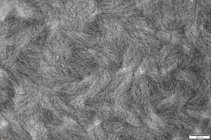 作品介绍:材料是有机太阳能电池薄膜,样品制备是将薄膜材料旋涂至预先旋有水溶性层的玻璃基底上,将薄膜置于水中待水溶性层溶解,使用铜网将薄膜材料捞出,之后在高真空条件下除去水分,完成样品的制备。图片拍照较易,体现薄膜的纤维特征即可。