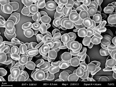 作品介绍:材料是红细胞。红细胞主要用于材料的生物毒性检测。样品制备过程主要是红细胞的获取、固定和脱水。红细胞是从兔子血液中提取的,将全血用PBS离心洗涤3次,底部沉淀即为红细胞。加入2.5%戊二醛固定4小时,用PBS离心洗涤3次,然后分别用30%、50%、70%、85%、95%、100%乙醇离心脱水,将样品滴到硅片上自然风干。由于红细胞导电性较差,进行100s的喷金,最后把硅片贴到样品台用于扫描电子显微镜拍摄。童话不仅存在梦幻电影里,也许存在我们流淌的血液里。寓意发现自身存在的美,找寻属于自己的人生意义。