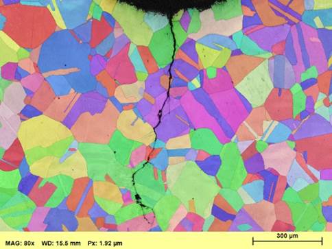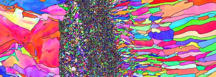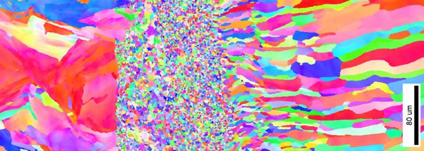 作品介绍:增材制造316L/CuCrZr功能梯度材料。作为面向等离子体的组件,316L/CuCrZr功能梯度材料可用于国际热核聚变实验堆的第一壁材料。因316L和CuCrZr合金物化性质差异大,其高质量EBSD界面试样的获得难度极大,无法通过电解和振动抛光等手段进行制备。因此,本试样采用离子抛光(1061 SEM Mill)并优化参数,包括电压、电流、抛光角度和位置等。在配备EBSD的扫描电子显微镜(sigma 300)测试过程中,材料界面处存在微纳晶粒尺寸梯度演变(纳米晶:~200nm,微米晶:~100μm)和物相演变。这种独特性结构的高质量展现对EBSD测试参数要求十分严格,需要对其精细调整和优化。综上,通过优化离子抛光参数和测试参数,成功获得了具有晶粒尺寸梯度结构316L/CuCrZr的高质量EBSD图片。