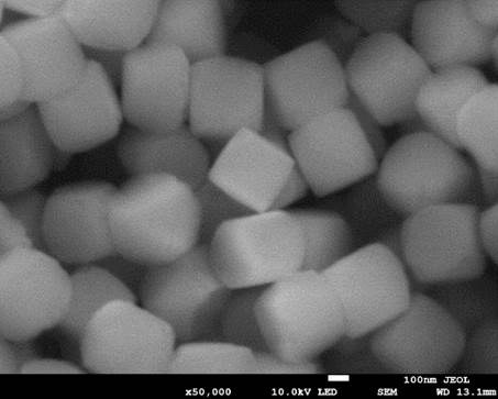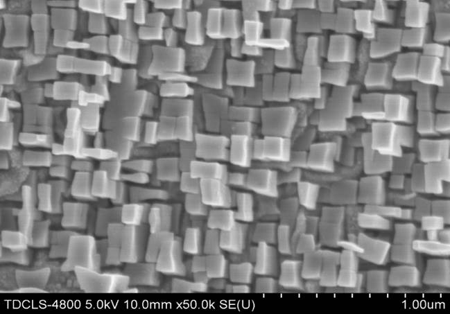 作品介绍:合成的高熵钙钛矿氢氧化物立方块-用JSM-7800F扫描电子显微镜拍摄,然后用Photoshop对立方块进行上色美化处理。