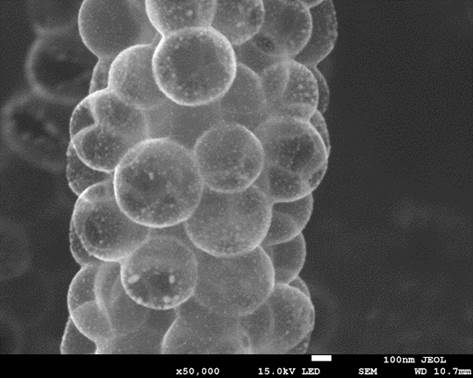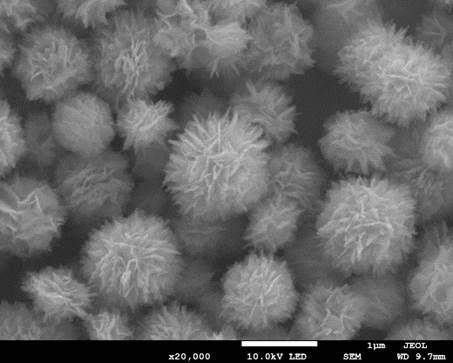 【编号42作品名称:氧化铟纳米球 作者:曹晏珲】仪器:扫描电镜JSM-7800F